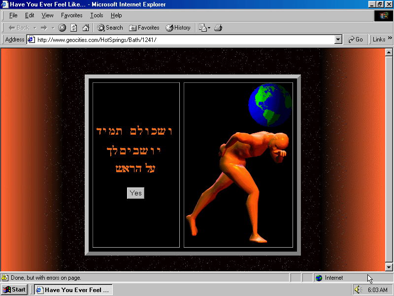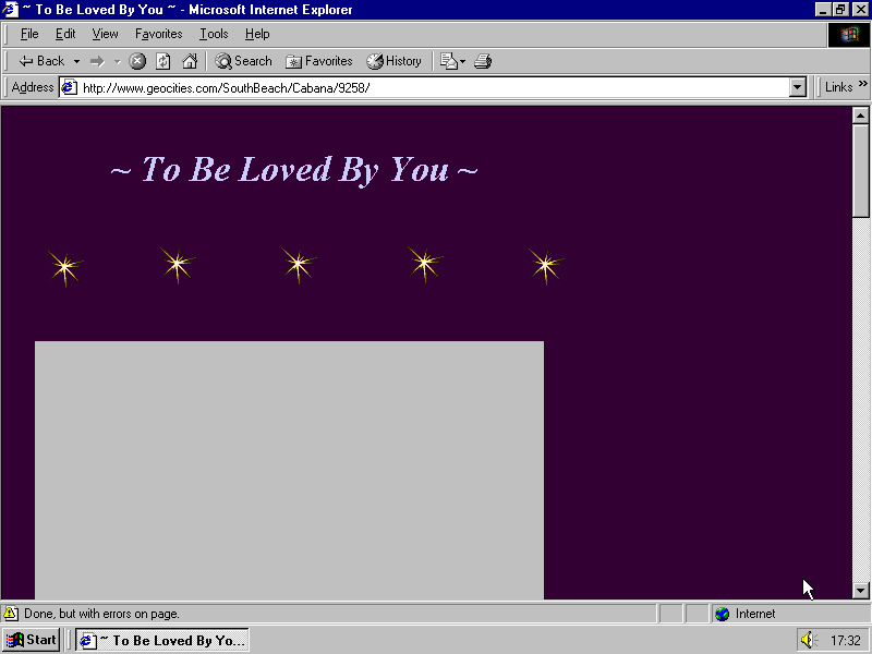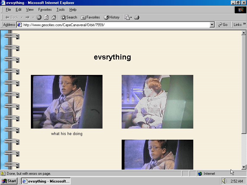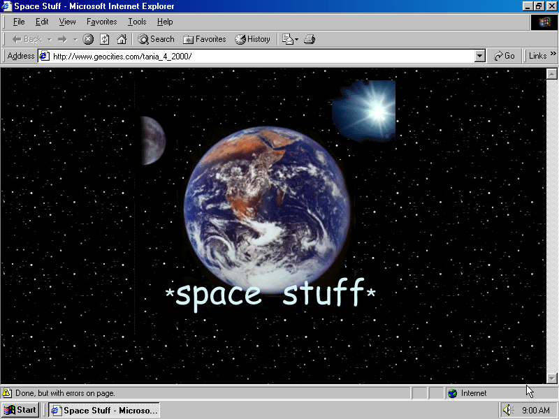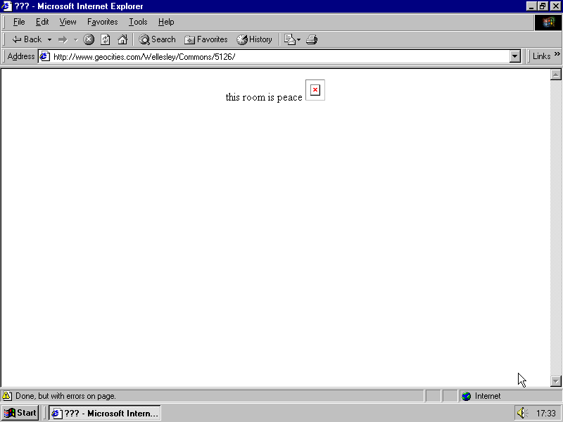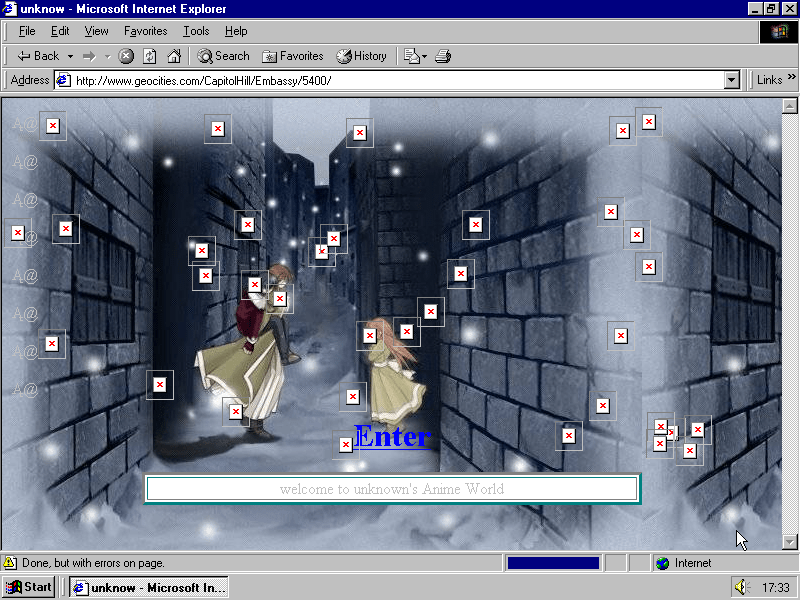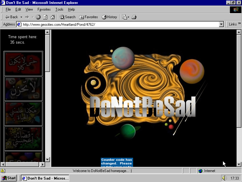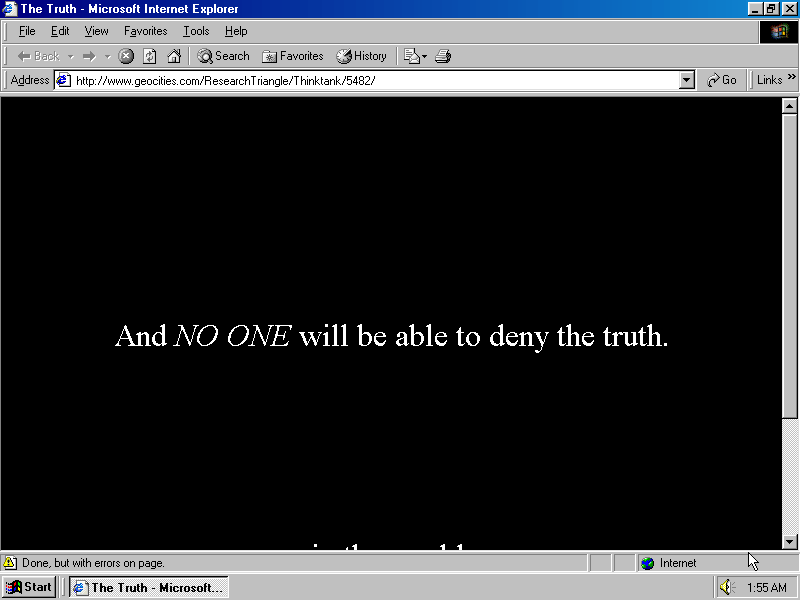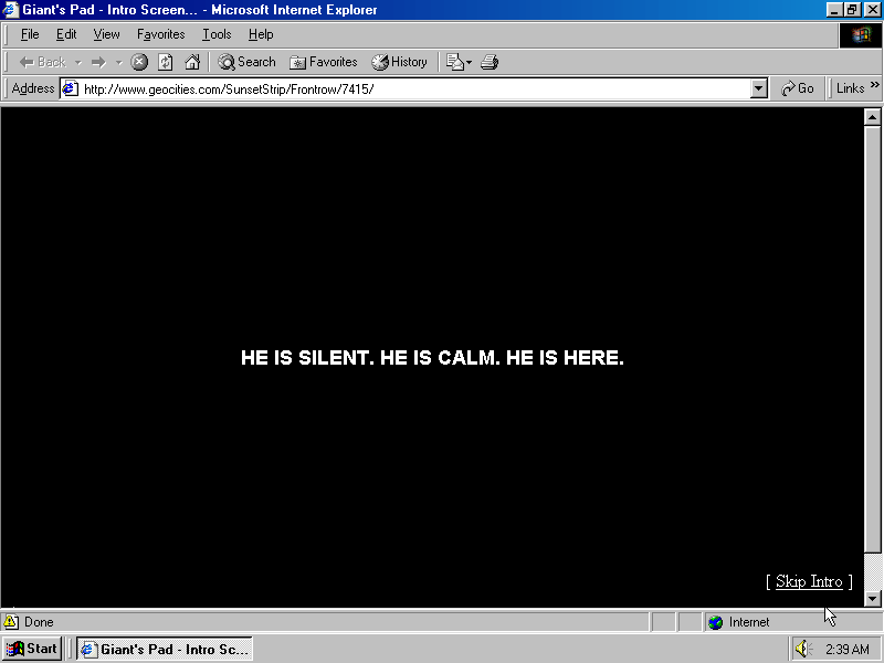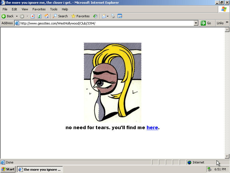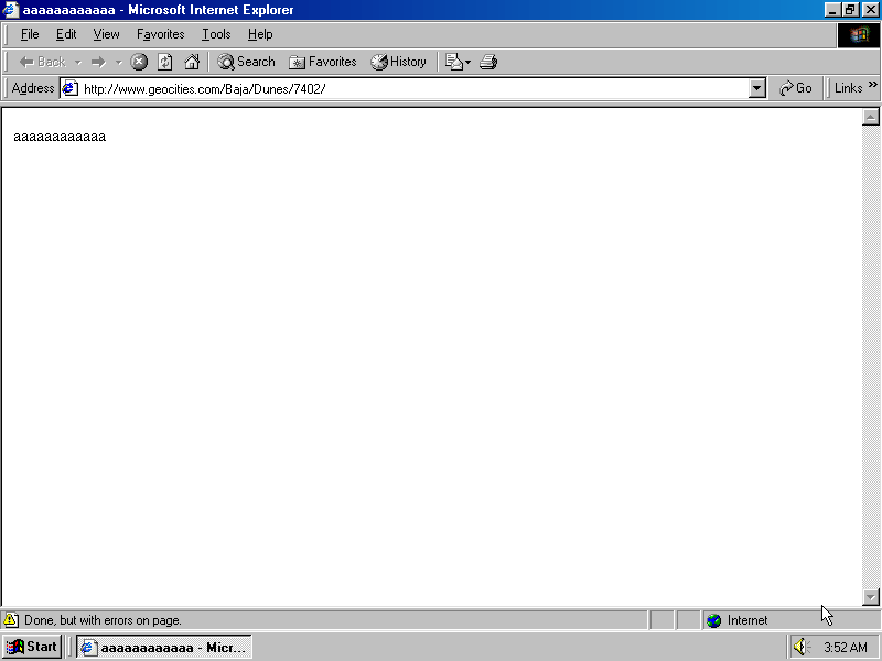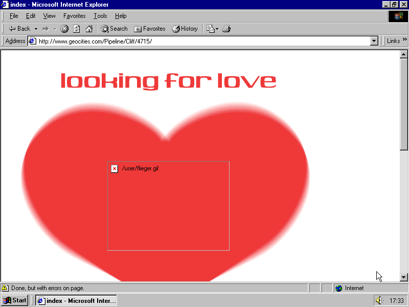 (This poem is assembled out of real Geocities web-pages, saved from oblivion by the Archive Team and rendered in era-appropriate web browsers by Olia Lialina and Dragan Espenschied for their project One Terabyte of Kilobyte Age. Just scroll down at your own pace.)